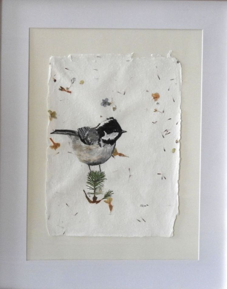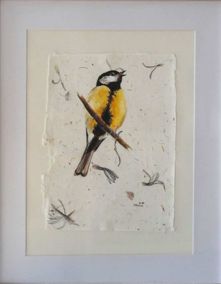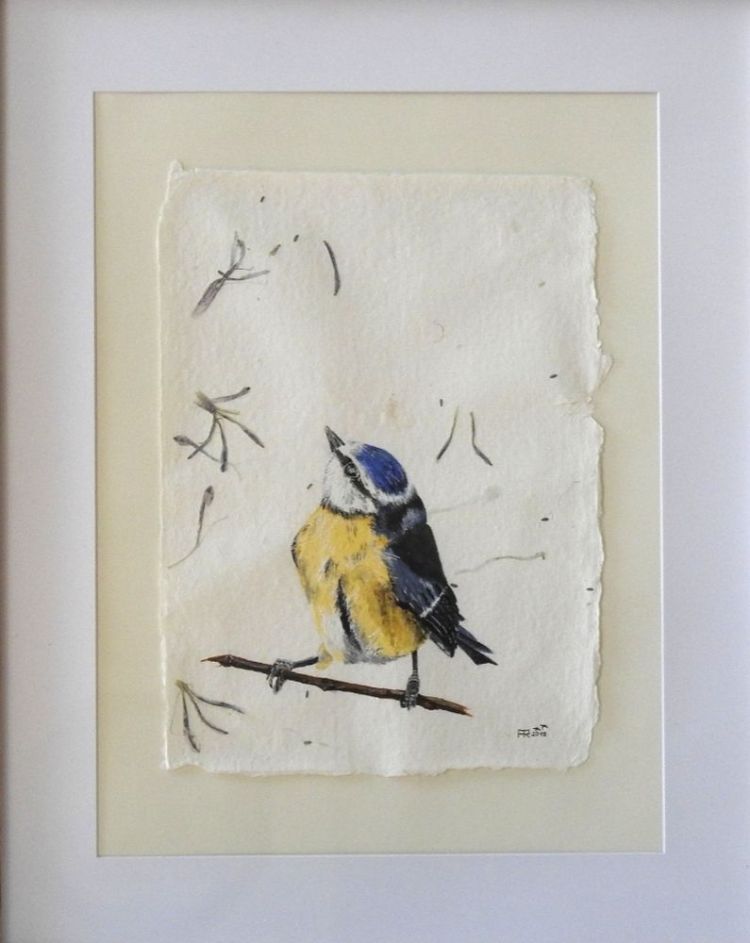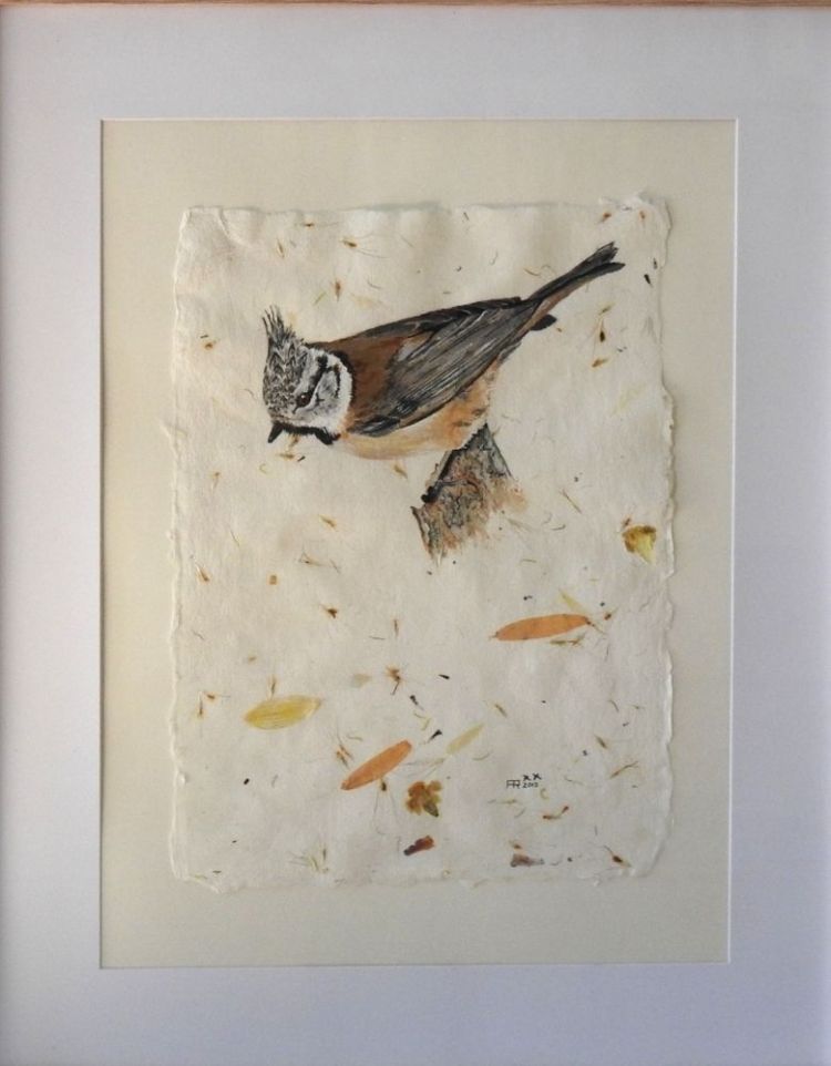 Acryl auf handgeschöpftem Papier Was passt besser auf ein wunderschönes handgeschöpftes Papier, versehen mit Blüten und Blättern, als ein Vogel? Eine Meisenserie ist entstanden: Tannenmeise Kohlmeise Schwanzmeise Haubenmeise Sumpfmeise Blaumeise Gefällt mir Wird geladen …