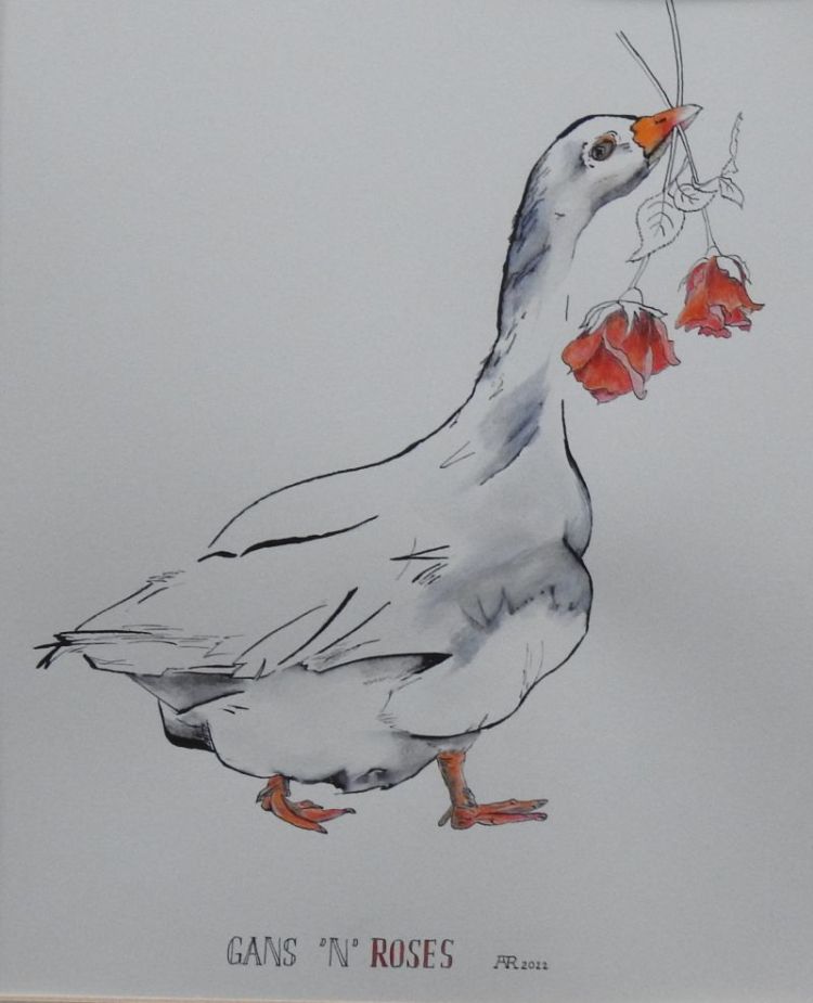 Tusche In den Tuschezeichnungen, coloriert in Aquarell, zeigen sich Wortwitz und Schalk. Taube Taube Guns and Roses 50×40 cm Hühnerauge 50×40 cm Bordsteinschwalbe 40×50 cm Hahn im Korb 40×50 cm Gefällt mir Wird geladen …